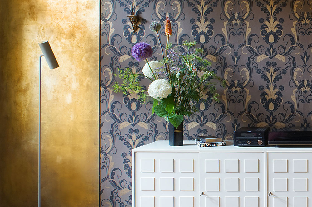 Einer unserer liebsten Tricks: Tapeten und Farben miteinander zu kombinieren. Die Wand als Ganzes wirkt dadurch weniger wuchtig und das Design außergewöhnlicher als eine klassische Akzentwand.